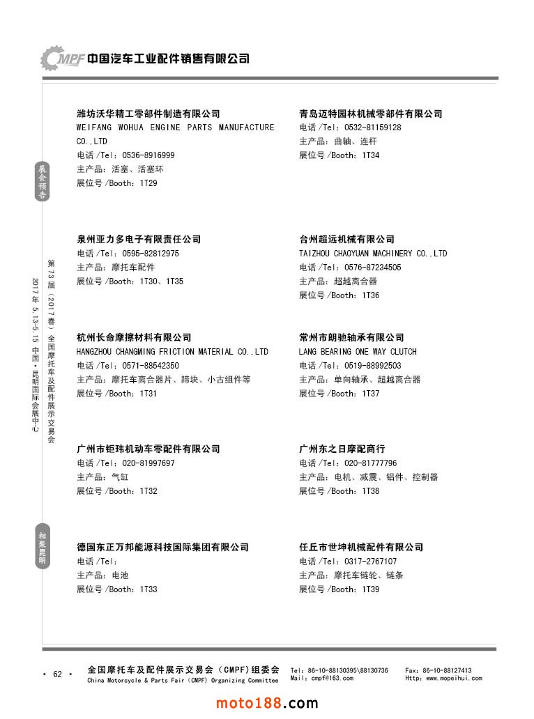 第36屆秋季(廣州)全國摩托車及配件展示交易會參展企業(yè)名錄