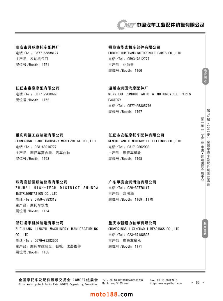第36屆秋季(廣州)全國摩托車及配件展示交易會參展企業名錄