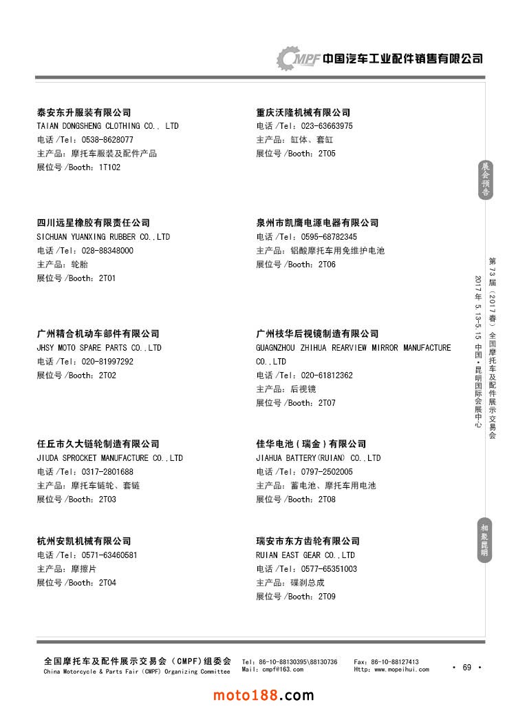 第36屆秋季(廣州)全國摩托車及配件展示交易會參展企業(yè)名錄