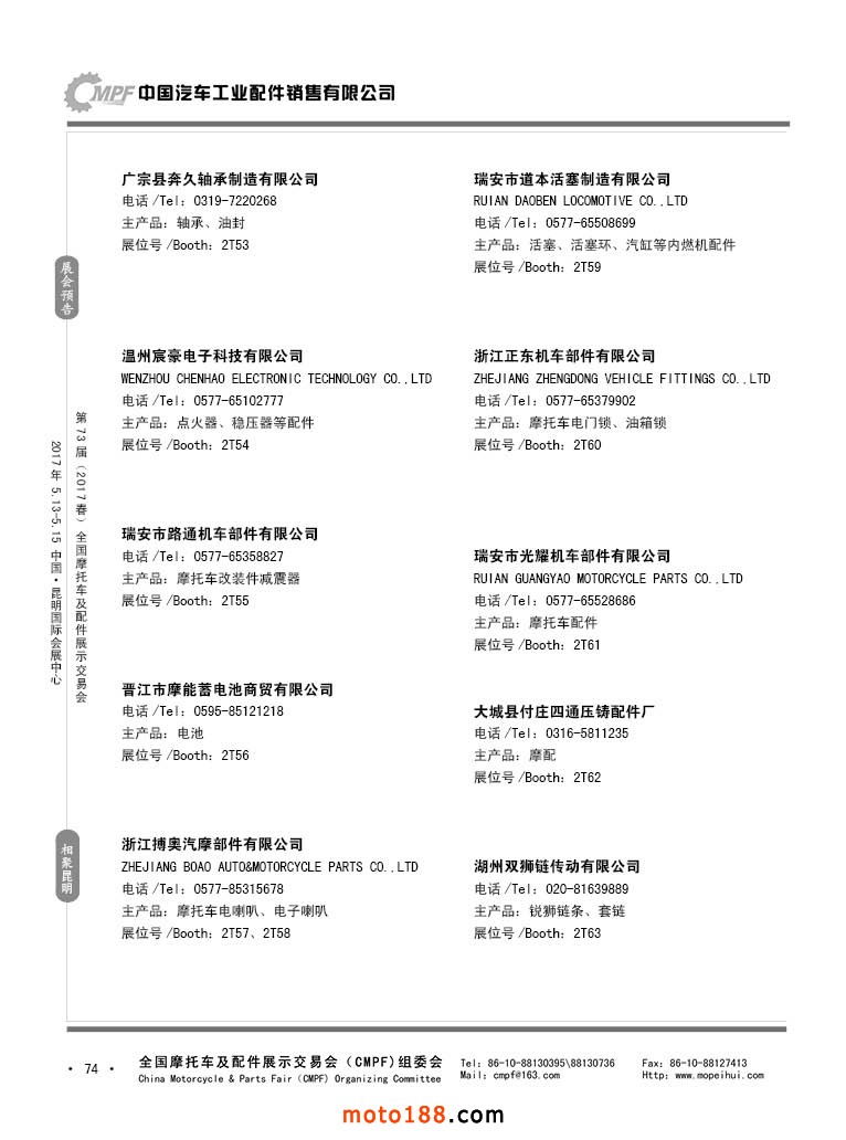 第36屆秋季(廣州)全國摩托車及配件展示交易會參展企業名錄