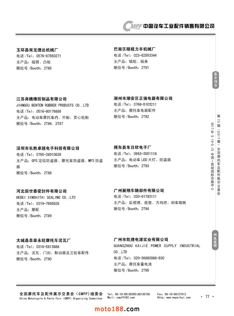第36屆秋季(廣州)全國摩托車及配件展示交易會參展企業名錄