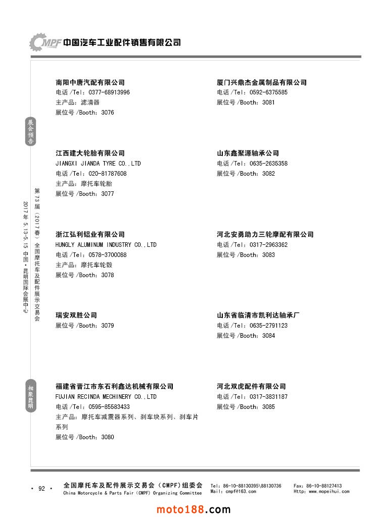 第36屆秋季(廣州)全國(guó)摩托車及配件展示交易會(huì)參展企業(yè)名錄