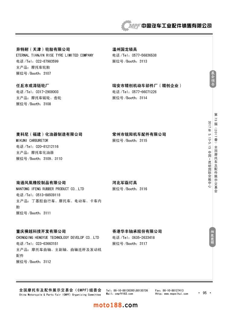 第36屆秋季(廣州)全國摩托車及配件展示交易會參展企業名錄
