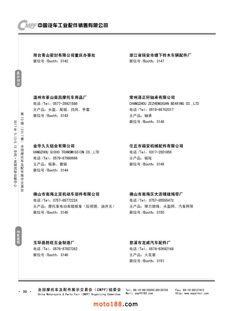 第36屆秋季(廣州)全國摩托車及配件展示交易會參展企業名錄