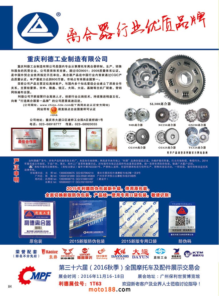行業期盼已久的廣州全國摩托車暨配件展示交易會終于開幕了,我們經過大半年的努力,為行業奉上了我們的勞動成果:《中國摩托車配件華南市場指南》第二次升級版, 本次升級版,在編排過程中,以廣州市場為核心,加上海南,新增廣西市場。廣州羅沖圍一帶市場現在已經成為行業的半壁江山,目前這些企業以外貿為主,吞吐量巨大,我們用了中英文形式編排,所有英文,我們有專業人員翻譯,確保翻譯的質量,編排順序由市場從東往西再往南。