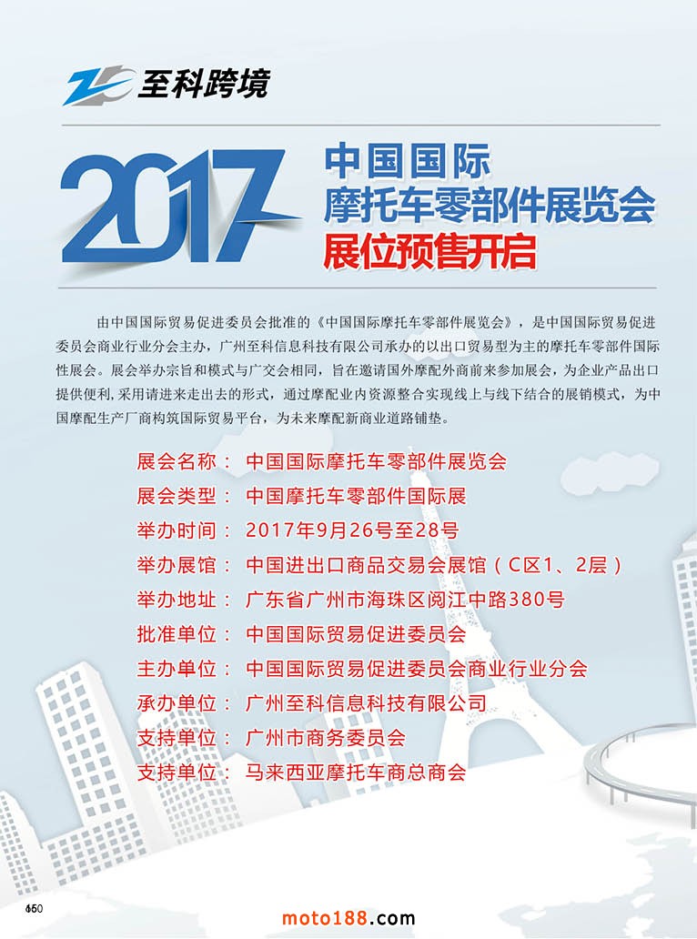 內(nèi)66 2017中國國際摩托車零部件展覽會展位預(yù)售開啟