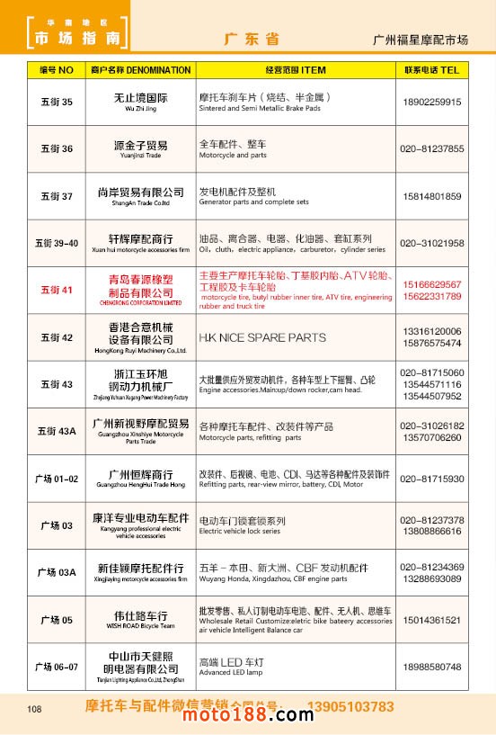 內108 廣州福星摩配市場商戶