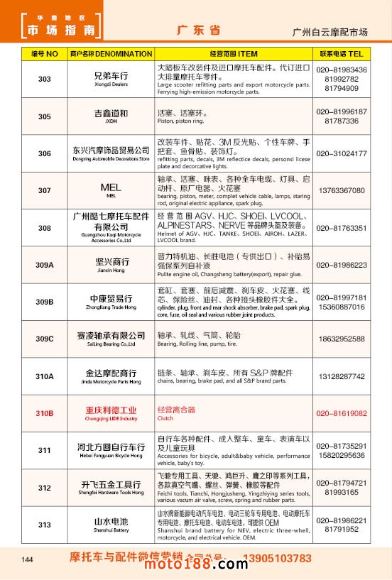 內(nèi)144 廣州市白云摩配市場商戶