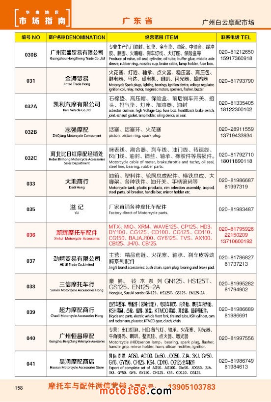 內(nèi)158 廣州市白云摩配市場商戶