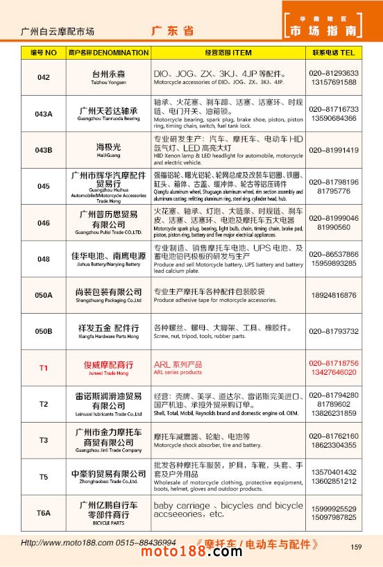 內(nèi)159 廣州市白云摩配市場商戶