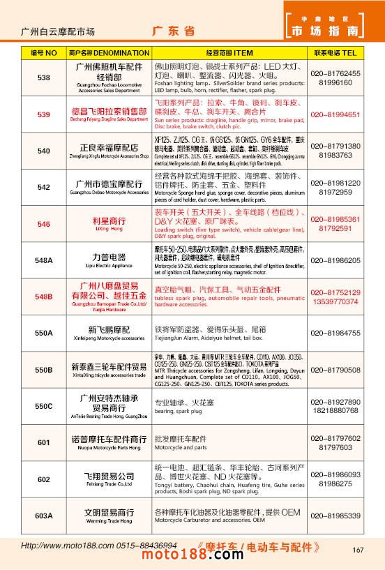 內167 廣州市白云摩配市場商戶