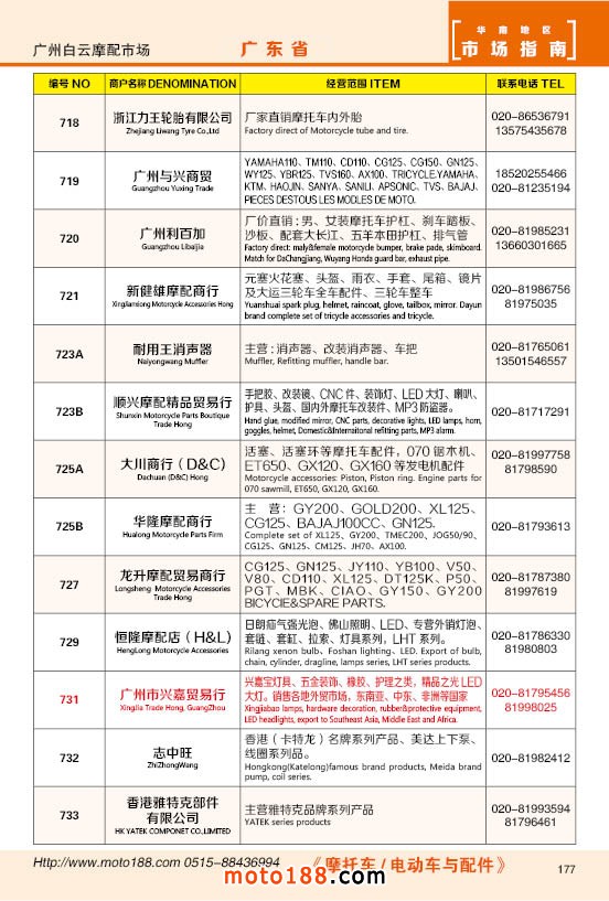 內177 廣州市白云摩配市場商戶
