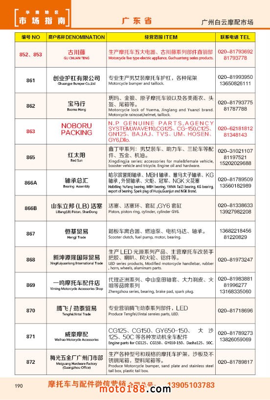 內190 廣州市白云摩配市場商戶