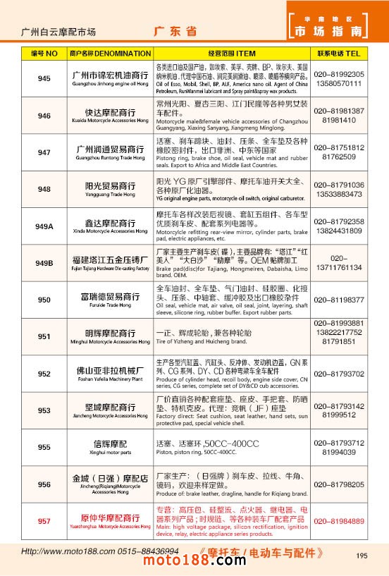 內195 廣州市白云摩配市場商戶
