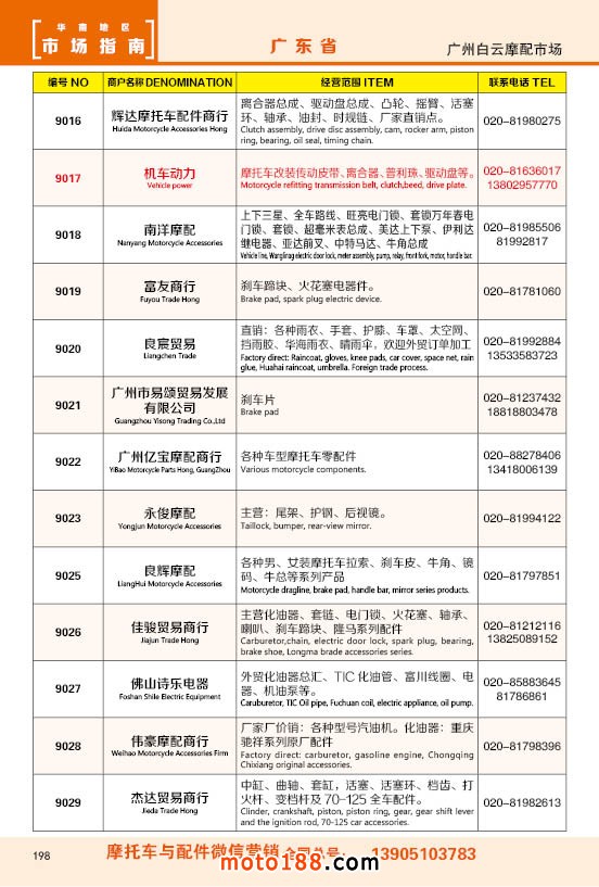 內198 廣州市白云摩配市場商戶