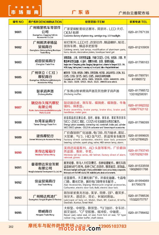 內202 廣州市白云摩配市場商戶