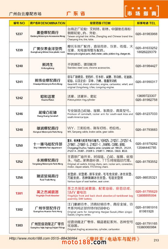 內213 廣州市白云摩配市場商戶