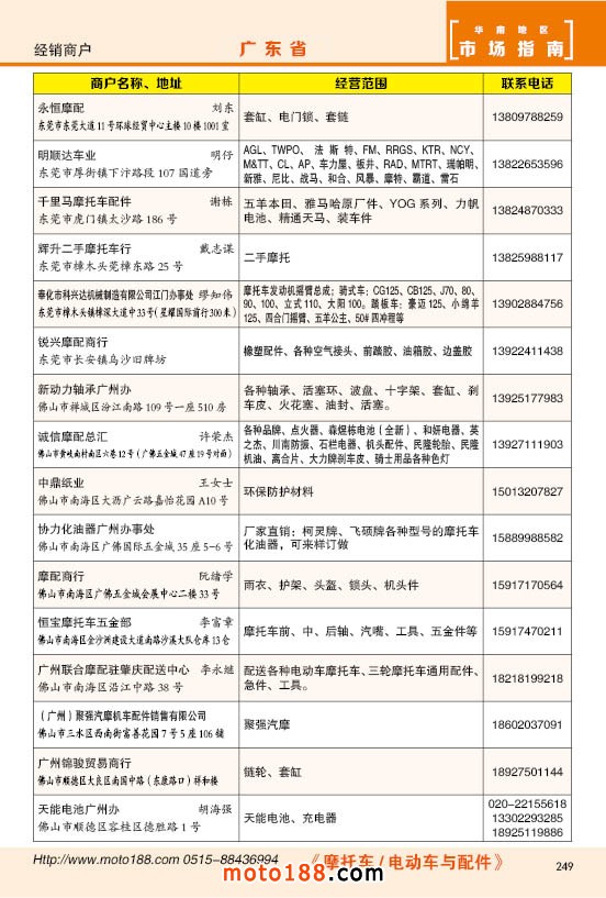 內(nèi)249 廣東省摩托車配件經(jīng)銷商戶