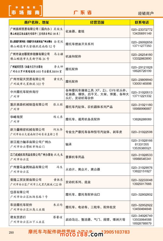 內250 廣東省摩托車配件經銷商戶