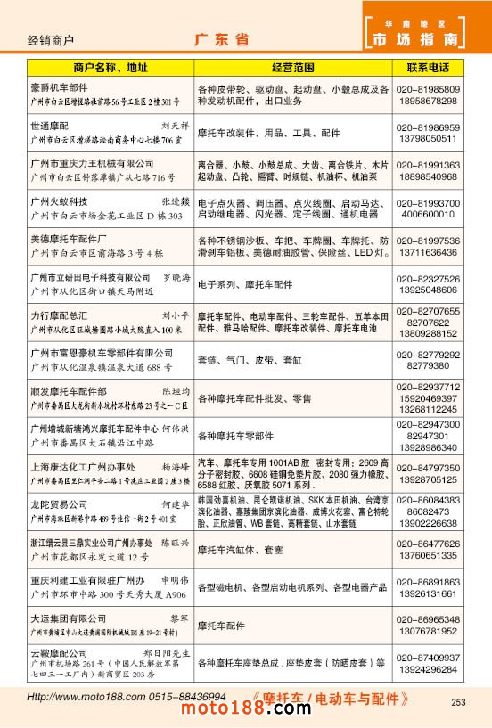 內253 廣東省摩托車配件經銷商戶