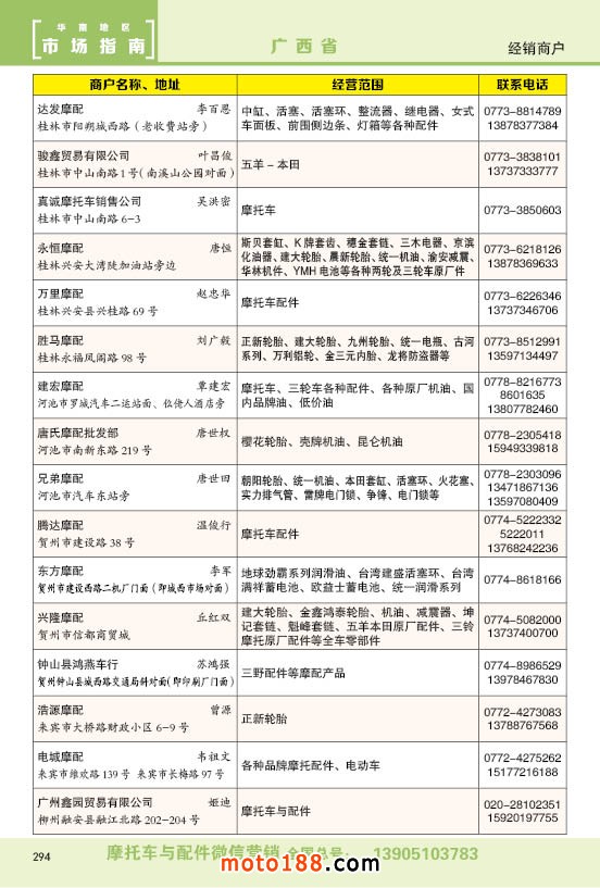 內(nèi)294廣西省摩托車配件經(jīng)銷商戶