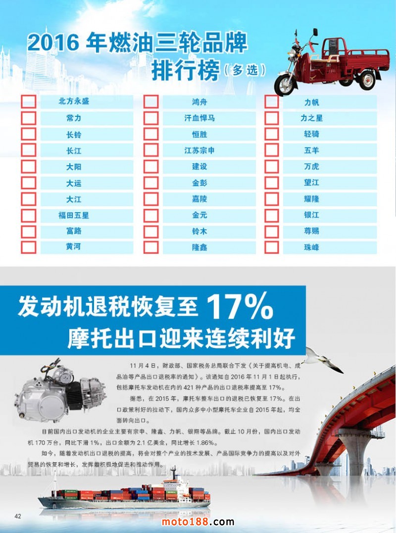 內42 2016年燃油三輪品牌排行榜