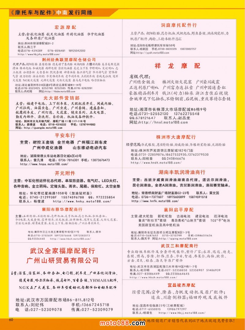 這次我們利用兩周的時間深入到廣西市場,廣西市場和去年相比多了好些生氣:中華市場由于前兩年門前修高架,路不好走,靠路邊的門市又被拆掉,市場人氣不旺。現在市場門前高架已經修好,出入市場也方便了,市場內檔口也沒有空的,摩托車配件市場增加了電動車配件的經營,市場人流量也比以往多。在它的市場的西邊,一墻之隔是嘉禾市場,這個市場有不少業主是以前路邊拆遷移過來的,以電動車配件批零為主,摩托車配件占半壁江山,兩個市場門面加起來有百家企業在此集中經營。從中華市場向東兩站地,就是望江嶺汽車配件市場,以往有四十戶左右的商戶在此經營,可能因為租金貴,目前走掉一半,只剩不到二十家,以批發為主,集中了一部分大戶,好多商戶將倉庫設在金盈橋市場。