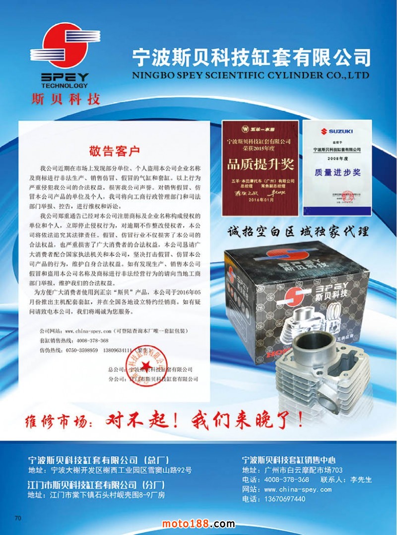 人勤春早,元宵節(jié)過后我們就整裝待發(fā),實(shí)施了走訪全國市場的計(jì)劃,這次走訪帶著幾個(gè)任務(wù):一、了解中國國內(nèi)摩托車市場的具體發(fā)展情況,并將這些見聞在我們雜志和網(wǎng)站上與行業(yè)企業(yè)分享,讓大家對(duì)目前市場有一個(gè)感性的認(rèn)識(shí)。二、我們帶著近年編的《市場指南》對(duì)著市場每一個(gè)客戶進(jìn)行核對(duì),哪些已經(jīng)改行了,哪些是新開的,具體數(shù)量有什么變化,新增了什么項(xiàng)目?我們帶著手機(jī)將門面拍下,這樣信息就更詳細(xì)和直觀。三、我們對(duì)新的《摩托車微信營銷平臺(tái)》進(jìn)行了現(xiàn)場推廣,掃描客戶的微信、添加好友。因?yàn)榕e全公司之力,用團(tuán)隊(duì)去作戰(zhàn),我們每天新增好友近200個(gè),我們?cè)谶@個(gè)行業(yè),要么不做,要做就做最好。在目前好友還沒達(dá)到我們預(yù)期的數(shù)量時(shí),我們只作無償?shù)姆?wù),修煉內(nèi)功,待成熟后再大力的推廣。我們保持足夠的定力,志在長遠(yuǎn)穩(wěn)步的開展工作。互聯(lián)網(wǎng)作為目前的通訊工具,我們盡可能將它的功能利用發(fā)揮起來,以更好的多形式的服務(wù)行業(yè),沒有去市場第一線辛勤的開展工作,靠坐在電腦前優(yōu)化,再用普遍人聽不懂的新詞忽悠,制造一些云天霧地的概念,然后就自夸這是互聯(lián)網(wǎng)思維,實(shí)際是對(duì)互聯(lián)網(wǎng)的褻瀆,建的是空中樓閣,在實(shí)際操作中往往會(huì)有一種處處碰壁,事事難成的玻璃墻擋著。