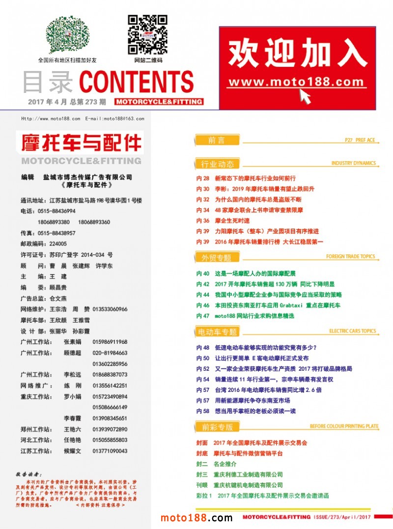 今年第73屆全國摩托車及配件展示交易會將在昆明召開,目前我們正在為會議進行緊張的忙碌中。今年在會議上我們提供的資料是《西南地區市場指南》《會刊》《摩托車與配件》第五期雜志,歡迎大家到6130展位來領取。