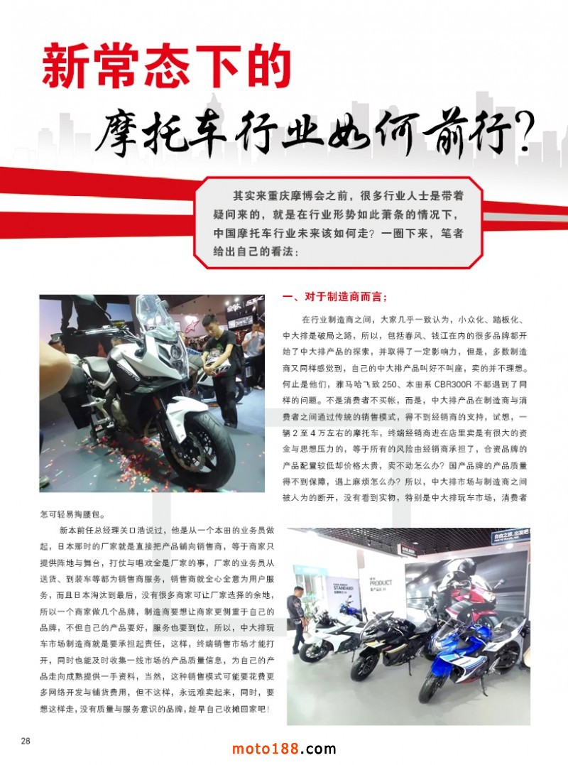 通過走訪,廣西,重慶,中南部分地區的市場,我們感覺:中國摩配內銷市場,雖然不溫不火,但是也沒有想象的那么悲觀。目前摩配市場普遍的在外觀面貌上都有所改變,以前的臟亂差油污看不到了,店面和店內的形象都有所改變;內在的,雖然現在市場洗牌一直在進行,競爭也比較激烈,但是由于整個原材料在漲價,零配件在漲價,工廠產能受多種原因限制,今年的市場批發戶,有庫存的反而贏得了商機,并不是像想象的那么慘淡,也不象專家的分析的那樣,危言聳聽。中國摩配市場,經過這么多年的搏殺,好多企業已經,久經風浪,我們這個傳統行業雖然不被人家看好,但是依然有我們這批在市場上努力勤懇打拼的摩配人,所以我們的行業才能生生不息,生存下來,大家努力吧,加油!