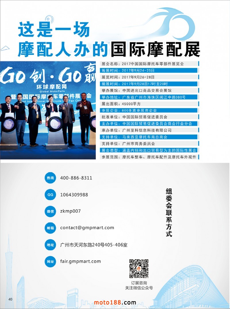 今年第73屆全國摩托車及配件展示交易會將在昆明召開,目前我們正在為會議進行緊張的忙碌中。今年在會議上我們提供的資料是《西南地區市場指南》《會刊》《摩托車與配件》第五期雜志,歡迎大家到6130展位來領取。
