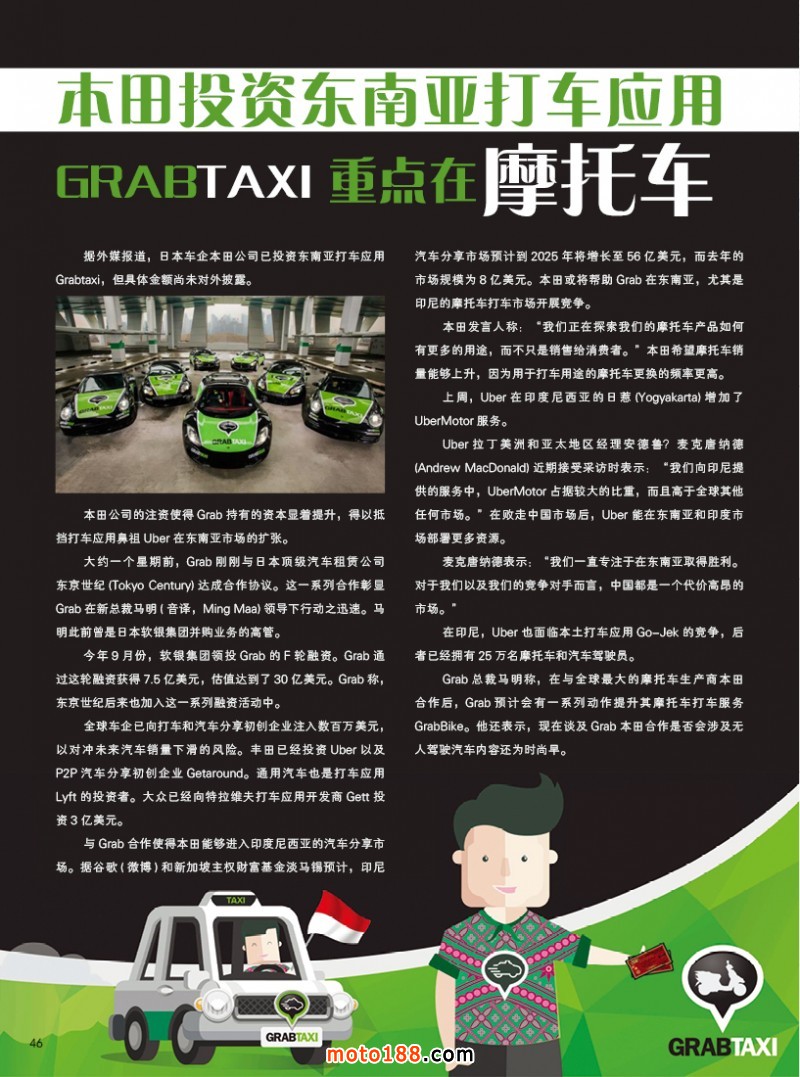 內46 本田投資東南亞打車應用Grabtaxi 重點在摩托車