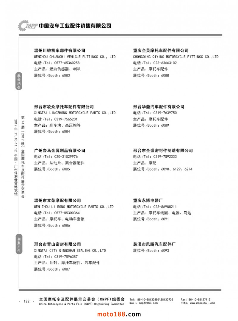 內(nèi)122 參展企業(yè)名錄