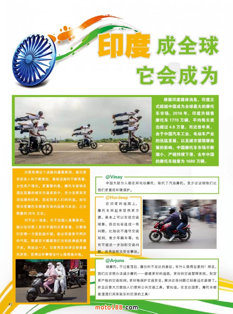 2017.6月《摩托車/電動車與配件》雜志,歡迎大家閱讀日期:2017-06-02 點擊:1297 查看原圖 全部展開![]() ![]() ![]() 內(nèi)42 印度成全球最大摩托車市場 它會成為下一個中國嗎?