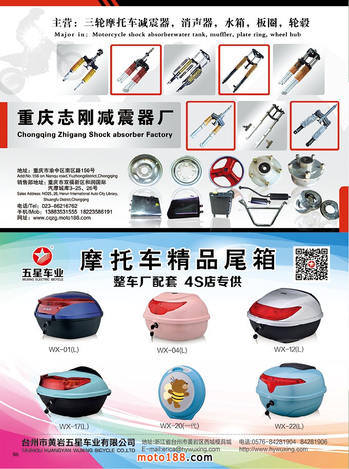 2017.8月《摩托車/電動車與配件》雜志,歡迎大家閱讀日期:2017-07-31 點擊:2382 查看原圖 全部展開![]() ![]() ![]() 內86 重慶志剛減震器廠