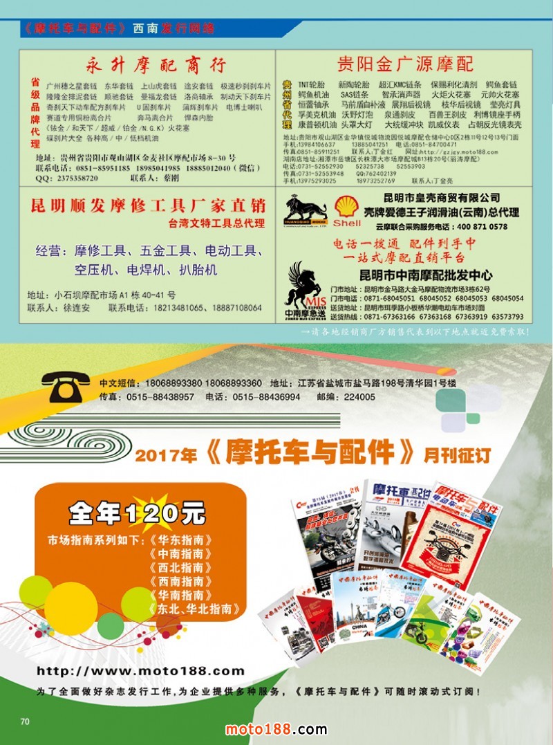 今年我們還做了一件大事:鑒于國內摩配市場經過長期調整后,也相對集中,便于我們對全國市場進行直投發行,我們對傳統的發行網絡進行了大調整,對部分小型市場從事批發的企業實行直投,對非市場各地區的二、三級批發商也納入到直投范圍,這部分企業資料我們已經整理完畢,部分省區已經開始直投,以前客戶擔心發行不到位的顧慮現在可以打消了,另外我們的微信和網站對我們的發行起到了很大幫助,通訊的改善,使我們的雜志通過不同的形式,讓行業所有的人士都能看到,對我們來說:市場依然在給我們發展的機會,我們自然不會放棄,努力做得更好,飛得更高!