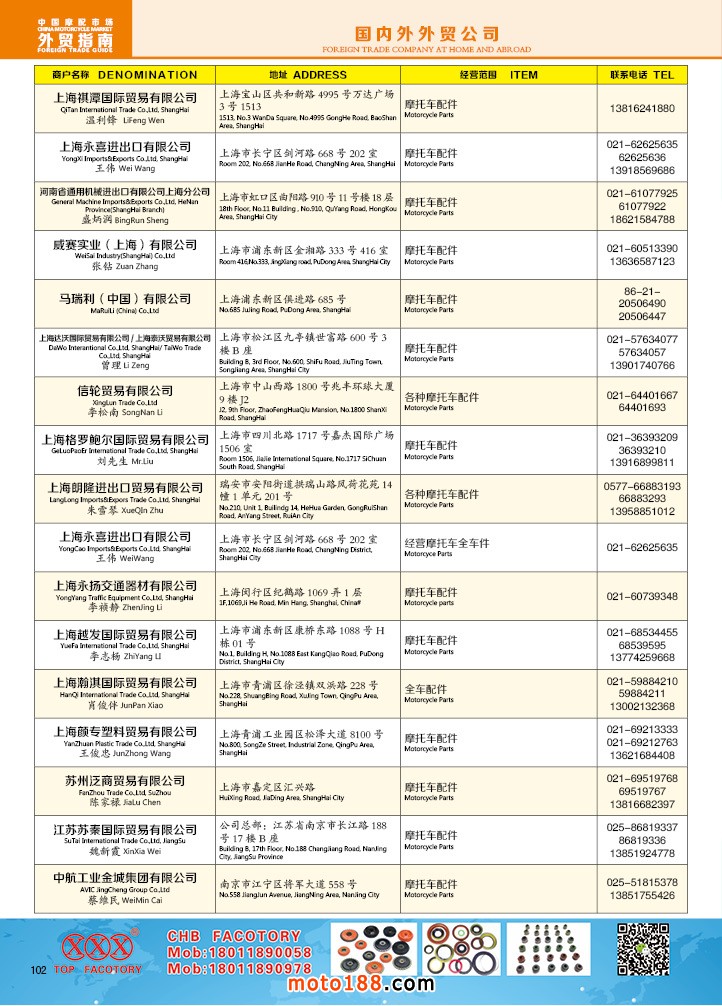 由《摩托車與配件》雜志社,在國內(nèi)首次獨家推出的《中國摩托車配件外貿(mào)市場指南》工具書正式面世。這是一本專業(yè)定位于外貿(mào)企業(yè)的工具書,隨著一帶一路發(fā)展戰(zhàn)略的推進,更多企業(yè)走出國門,將產(chǎn)品銷往世界各地,本書收集了國內(nèi)主要從事摩托車配件外貿(mào)的工廠、商家、國外部分駐華采購機構(gòu)等資料匯總而成.