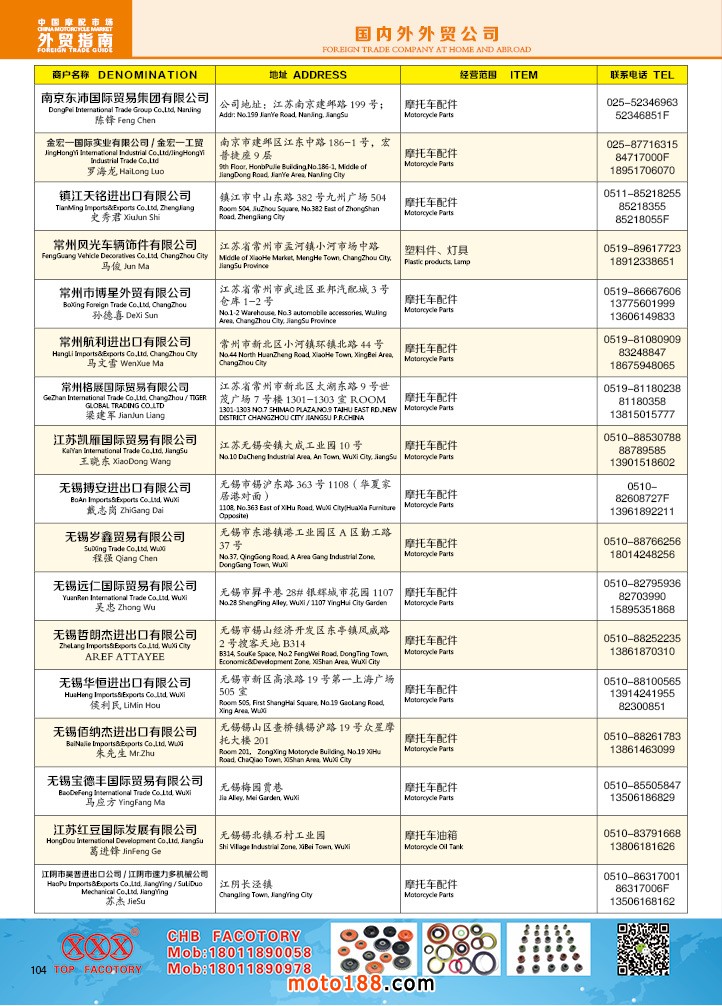 由《摩托車與配件》雜志社,在國內首次獨家推出的《中國摩托車配件外貿市場指南》工具書正式面世。這是一本專業定位于外貿企業的工具書,隨著一帶一路發展戰略的推進,更多企業走出國門,將產品銷往世界各地,本書收集了國內主要從事摩托車配件外貿的工廠、商家、國外部分駐華采購機構等資料匯總而成.