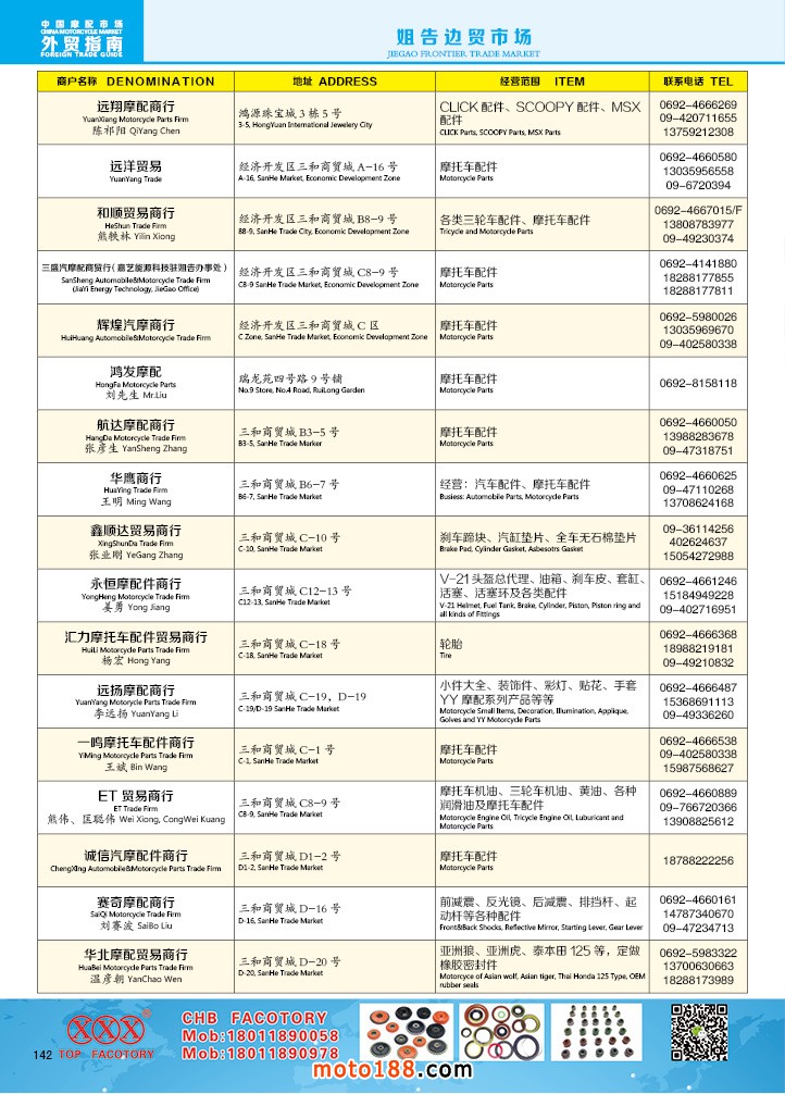 由《摩托車與配件》雜志社,在國內首次獨家推出的《中國摩托車配件外貿市場指南》工具書正式面世。這是一本專業定位于外貿企業的工具書,隨著一帶一路發展戰略的推進,更多企業走出國門,將產品銷往世界各地,本書收集了國內主要從事摩托車配件外貿的工廠、商家、國外部分駐華采購機構等資料匯總而成.
