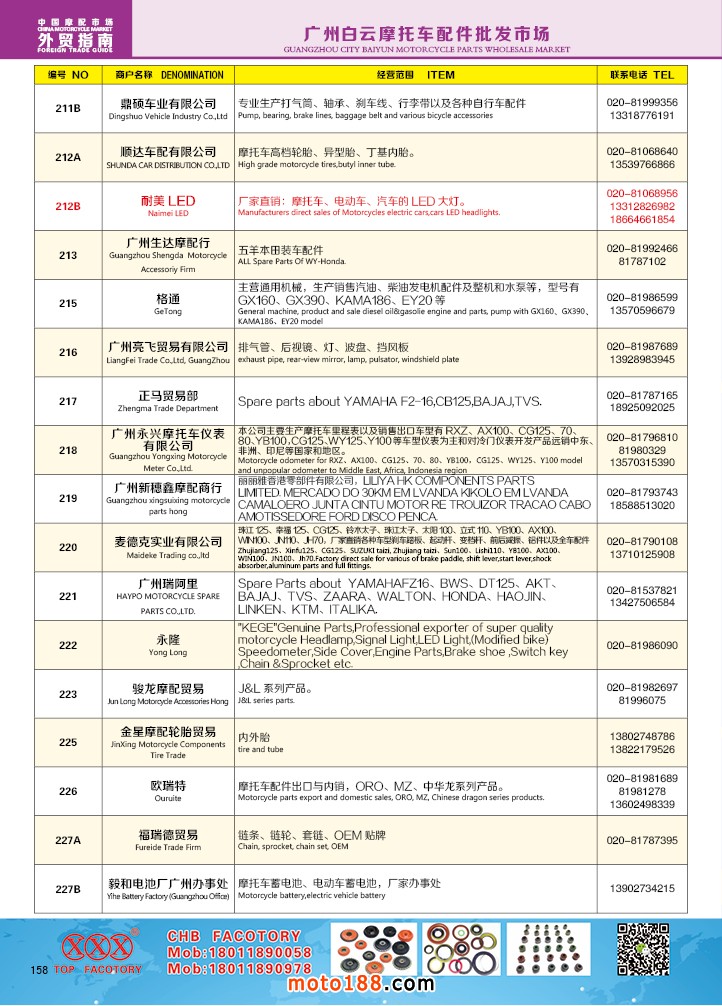 由《摩托車與配件》雜志社,在國內首次獨家推出的《中國摩托車配件外貿市場指南》工具書正式面世。這是一本專業定位于外貿企業的工具書,隨著一帶一路發展戰略的推進,更多企業走出國門,將產品銷往世界各地,本書收集了國內主要從事摩托車配件外貿的工廠、商家、國外部分駐華采購機構等資料匯總而成.