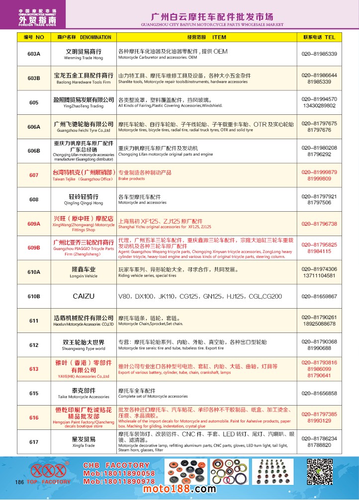 由《摩托車與配件》雜志社,在國內(nèi)首次獨家推出的《中國摩托車配件外貿(mào)市場指南》工具書正式面世。這是一本專業(yè)定位于外貿(mào)企業(yè)的工具書,隨著一帶一路發(fā)展戰(zhàn)略的推進,更多企業(yè)走出國門,將產(chǎn)品銷往世界各地,本書收集了國內(nèi)主要從事摩托車配件外貿(mào)的工廠、商家、國外部分駐華采購機構(gòu)等資料匯總而成.