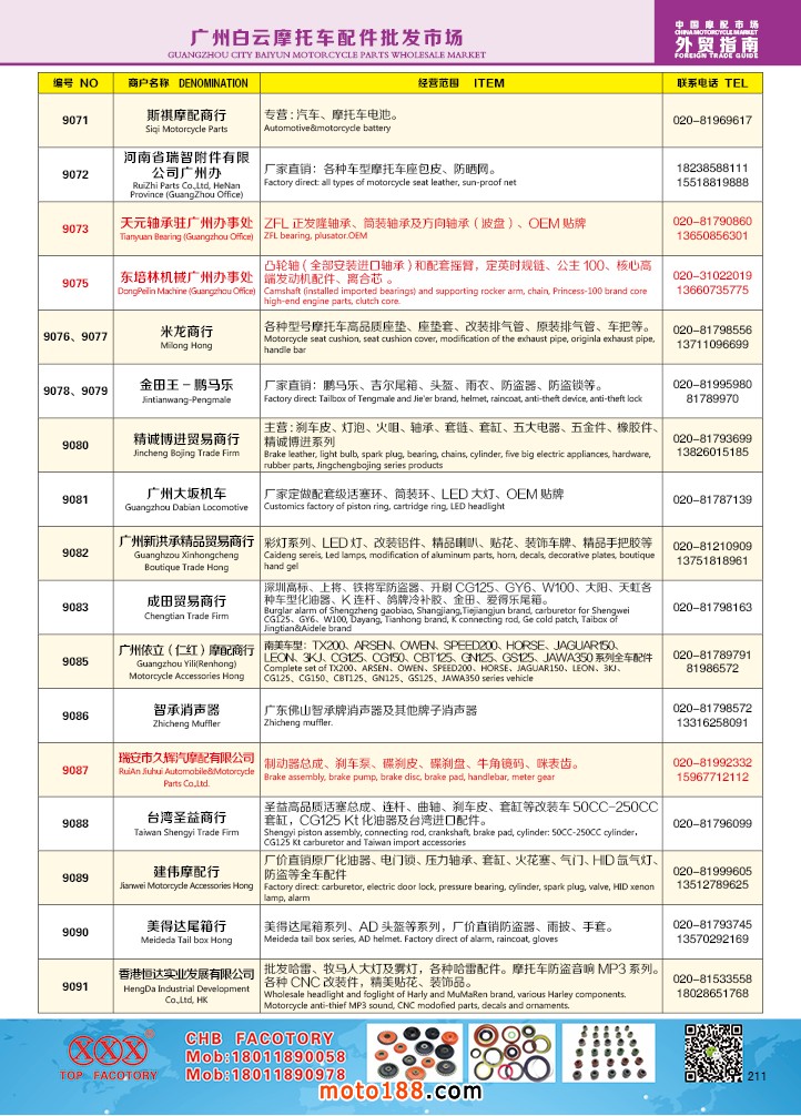 內211 廣州白云摩托車配件批發市場