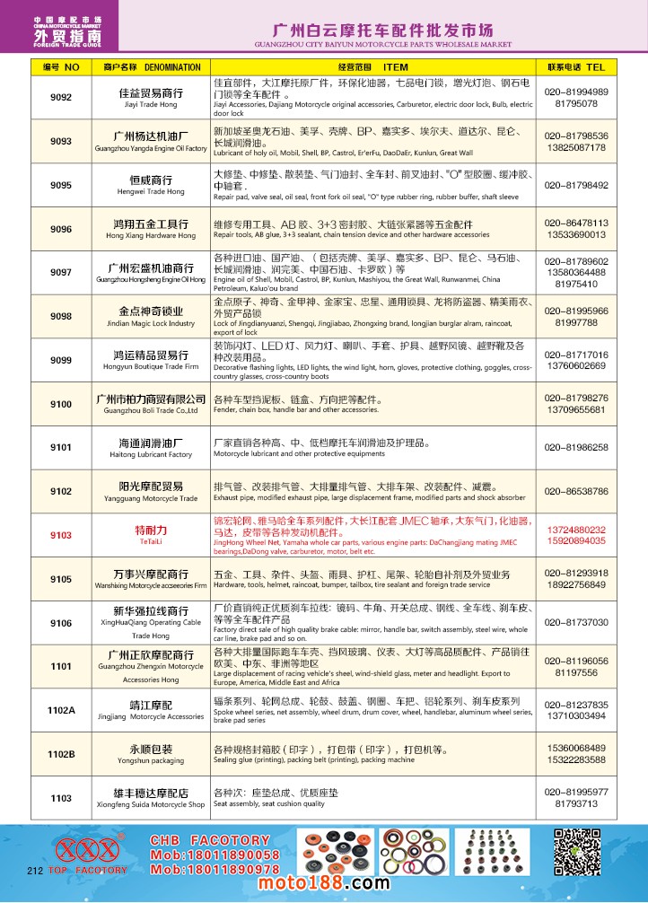 內(nèi)212 廣州白云摩托車配件批發(fā)市場(chǎng)