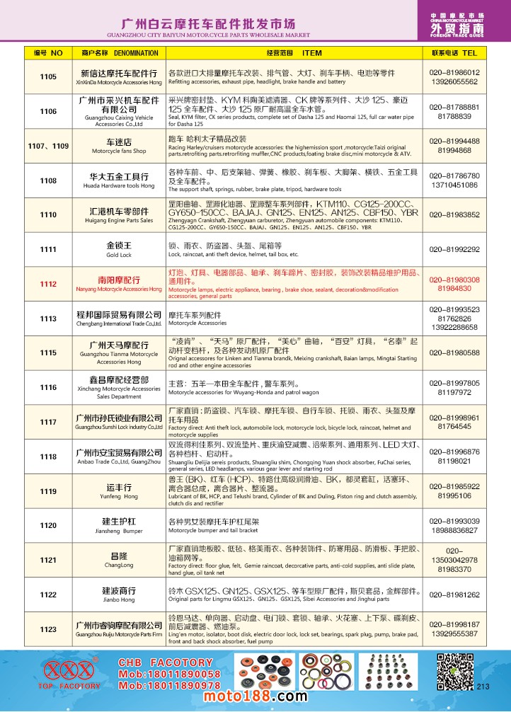 內213 廣州白云摩托車配件批發市場