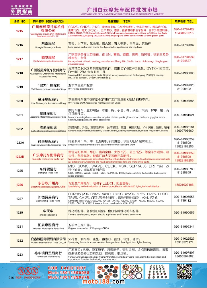 由《摩托車與配件》雜志社,在國內(nèi)首次獨家推出的《中國摩托車配件外貿(mào)市場指南》工具書正式面世。這是一本專業(yè)定位于外貿(mào)企業(yè)的工具書,隨著一帶一路發(fā)展戰(zhàn)略的推進,更多企業(yè)走出國門,將產(chǎn)品銷往世界各地,本書收集了國內(nèi)主要從事摩托車配件外貿(mào)的工廠、商家、國外部分駐華采購機構(gòu)等資料匯總而成.