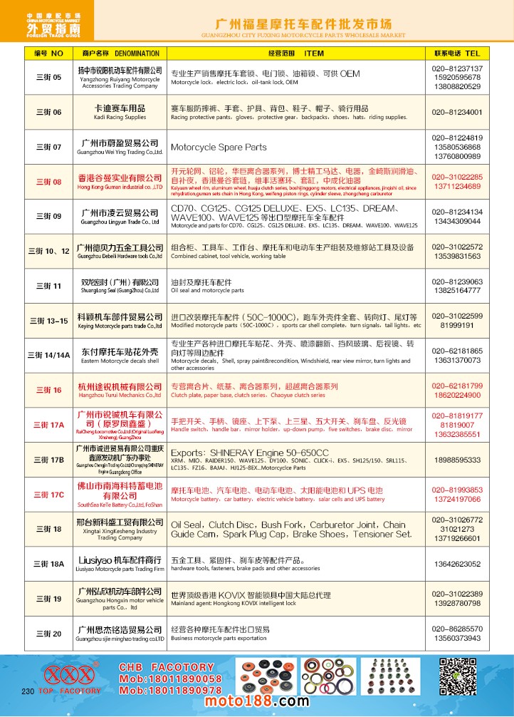 由《摩托車與配件》雜志社,在國內首次獨家推出的《中國摩托車配件外貿市場指南》工具書正式面世。這是一本專業定位于外貿企業的工具書,隨著一帶一路發展戰略的推進,更多企業走出國門,將產品銷往世界各地,本書收集了國內主要從事摩托車配件外貿的工廠、商家、國外部分駐華采購機構等資料匯總而成.
