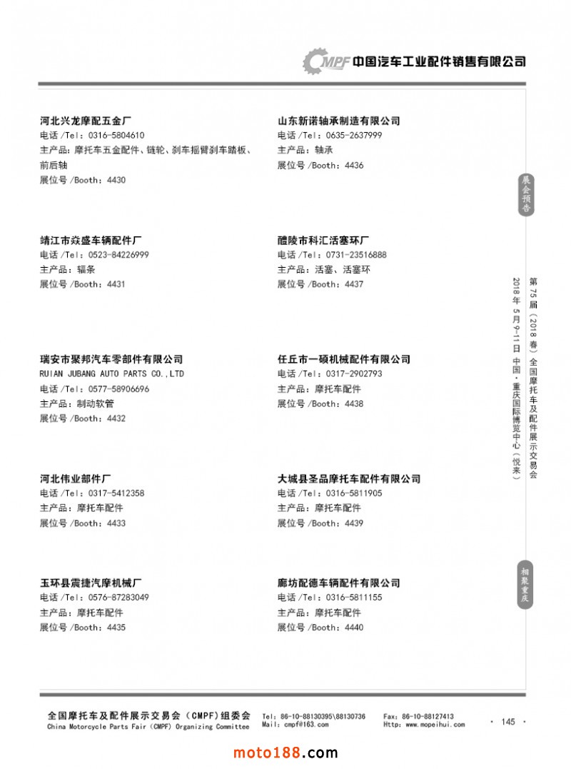 內145 第74屆(2017秋)全國摩托車及配件展示交易會-廣州站參展企業(yè)名錄