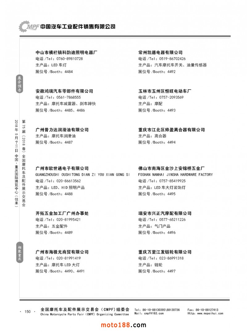 內150 第74屆(2017秋)全國摩托車及配件展示交易會-廣州站參展企業名錄
