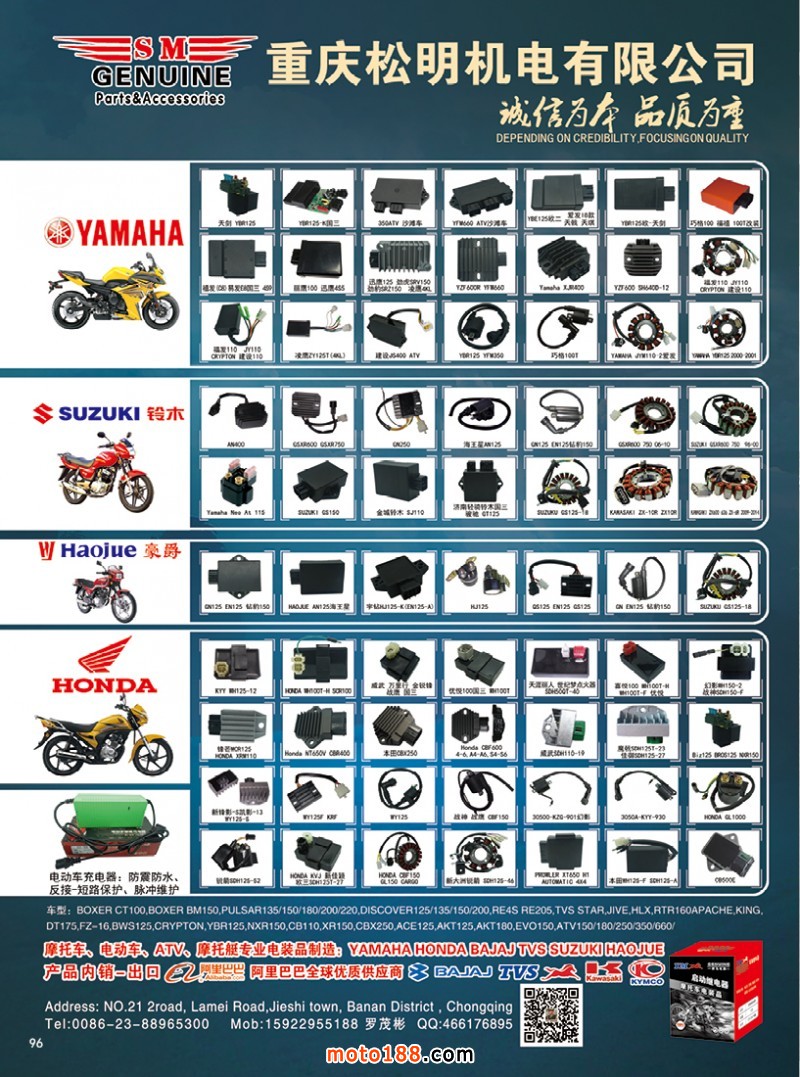 國內首本中英文雙語《中國摩配外貿市場指南》,為從事外貿的企業提供了工具。這本書在廣州秋季全摩會上首發。還將參加明年的江門和重慶春季全摩會。歡迎行業朋友帶上名片或者手機掃二維碼,到4079展位來領取《中國摩配外貿市場指南》和《摩托車與配件》11期雜志。