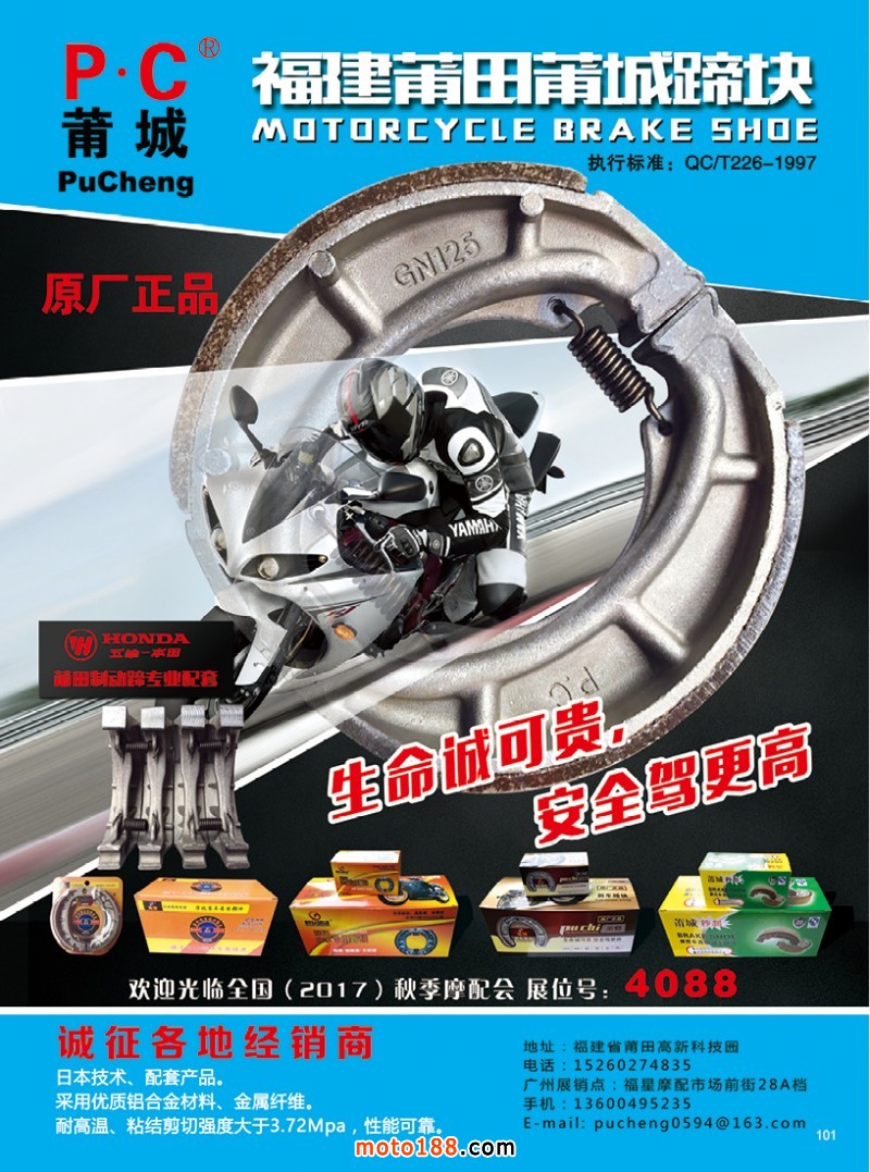 國內首本中英文雙語《中國摩配外貿市場指南》,為從事外貿的企業提供了工具。這本書在廣州秋季全摩會上首發。還將參加明年的江門和重慶春季全摩會。歡迎行業朋友帶上名片或者手機掃二維碼,到4079展位來領取《中國摩配外貿市場指南》和《摩托車與配件》11期雜志。